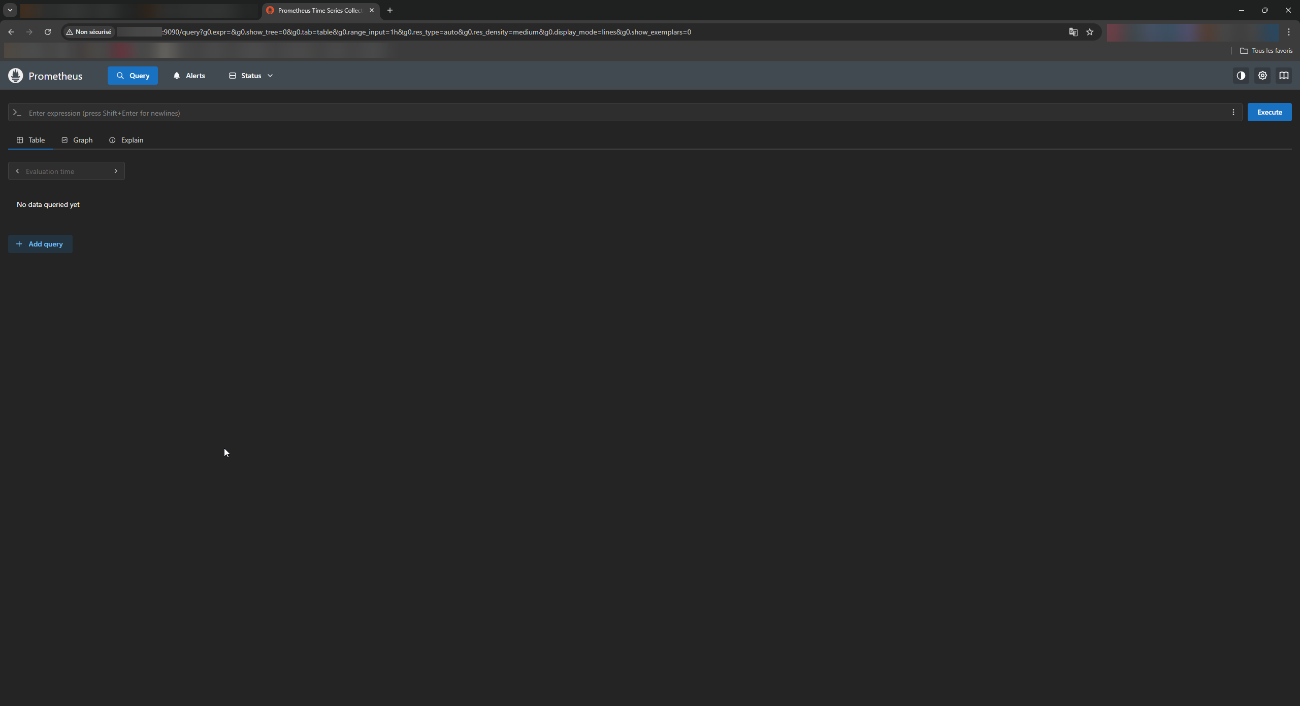 Aperçu de l'interface web de Prometheus, accessible sur le port 9090.