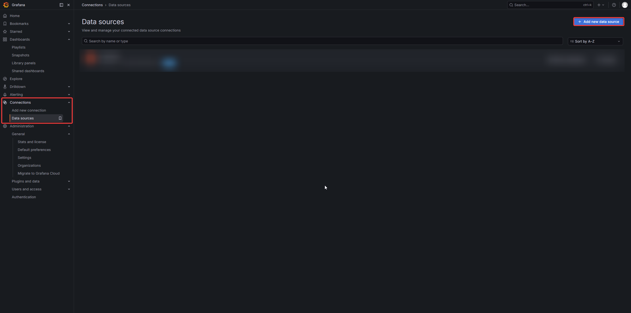 On se connecte à Grafana et on se rend dans l'onglet Data Sources